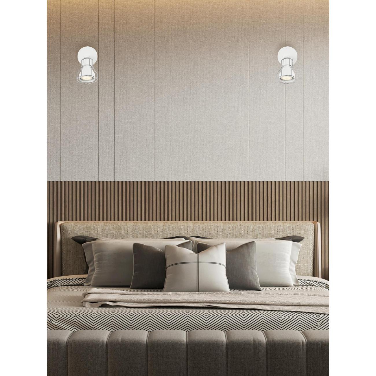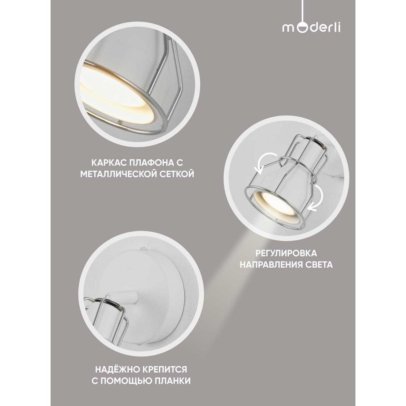 Стильный настенный спот в современном дизайне. Белый каркас плафона декорирован металлической сеткой для стиля и практичности. В качестве источника света могут быть использованы галогенные или LED лампы с цоколем GU10. Подвижный плафон помогает настроить точечное освещение и создавать интересные световые акценты в интерьере. Спот Source станет прекрасным дополнительным освещением для спальни, зала, гостиной или кухни.