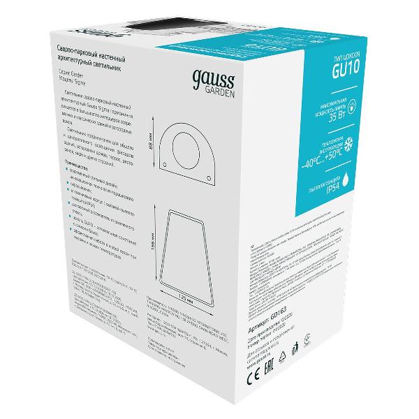 Вы можете купить Светильник уличный Gauss Sigma (GD163) в магазинах М.Видео по доступной цене. Светильник уличный Gauss Sigma (GD163): подробное описание, фото и отзывы реальных покупателей, характеристики, возможность скачать инструкции и подобрать аксессуары.