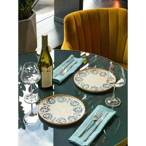 Коллекция украшена аутентичной текстурой и средиземноморскими голубыми узорами, каждый из которых был нарисован вручную один за другим, а потом запечатлен на фарфоре.