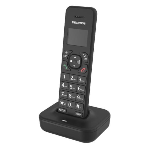 Радиотелефон dect Decross DC1102B — база и беспроводная трубка с функцией громкой связи, поддержкой слуховых аппаратов и телефонной книгой на 50 номеров. Прибор функционирует по стандарту Dect и поддерживает расширение Gap. Телефонная трубка весом 150 г сохраняет связь с базой на расстоянии до 50 м (в помещении) и 300 м (на открытом пространстве). Трехстрочный LCD-дисплей с оранжевой подсветкой отображает время разговора, заряд батареи, позволяет выполнять настройки. Крупные, хорошо читаемые клавиши, способствуют быстрому вводу информации, который возможен в импульсном и тоновом режимах.