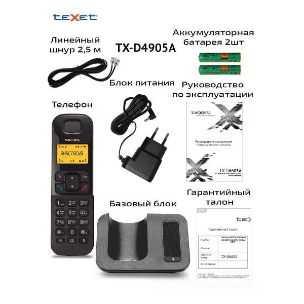 Вы можете купить Телефон dect teXet TX-D6605А в магазинах М.Видео по доступной цене. Телефон dect teXet TX-D6605А: подробное описание, фото и отзывы реальных покупателей, характеристики, возможность скачать инструкции и подобрать аксессуары.