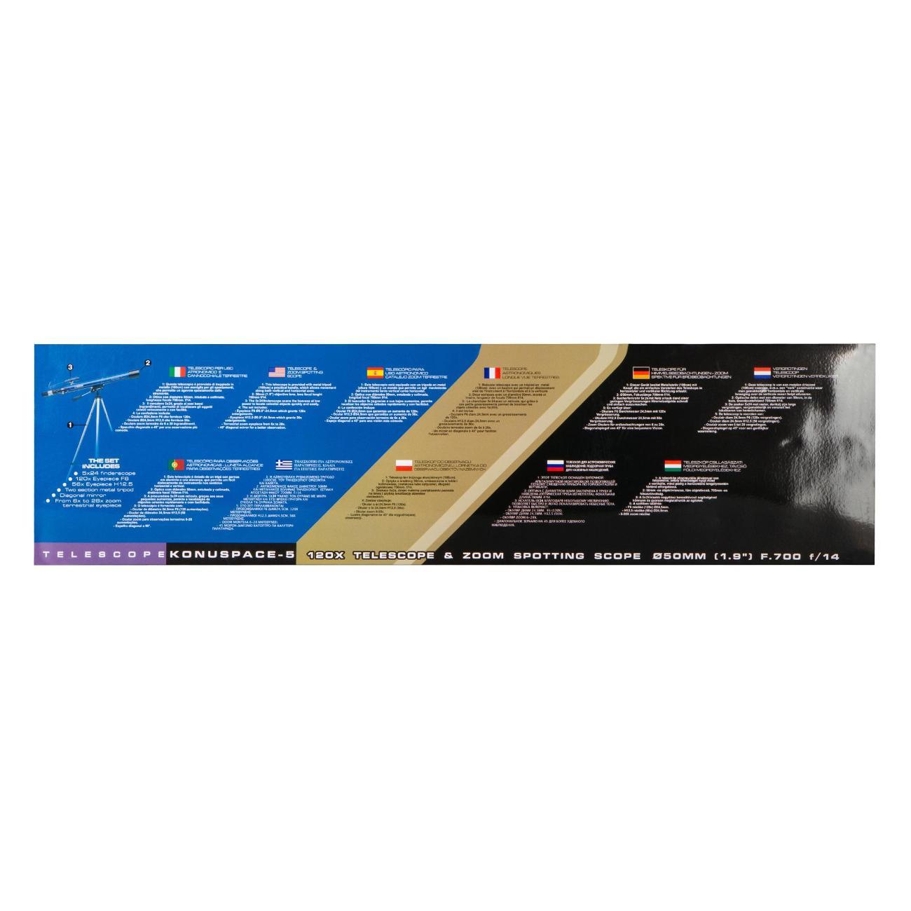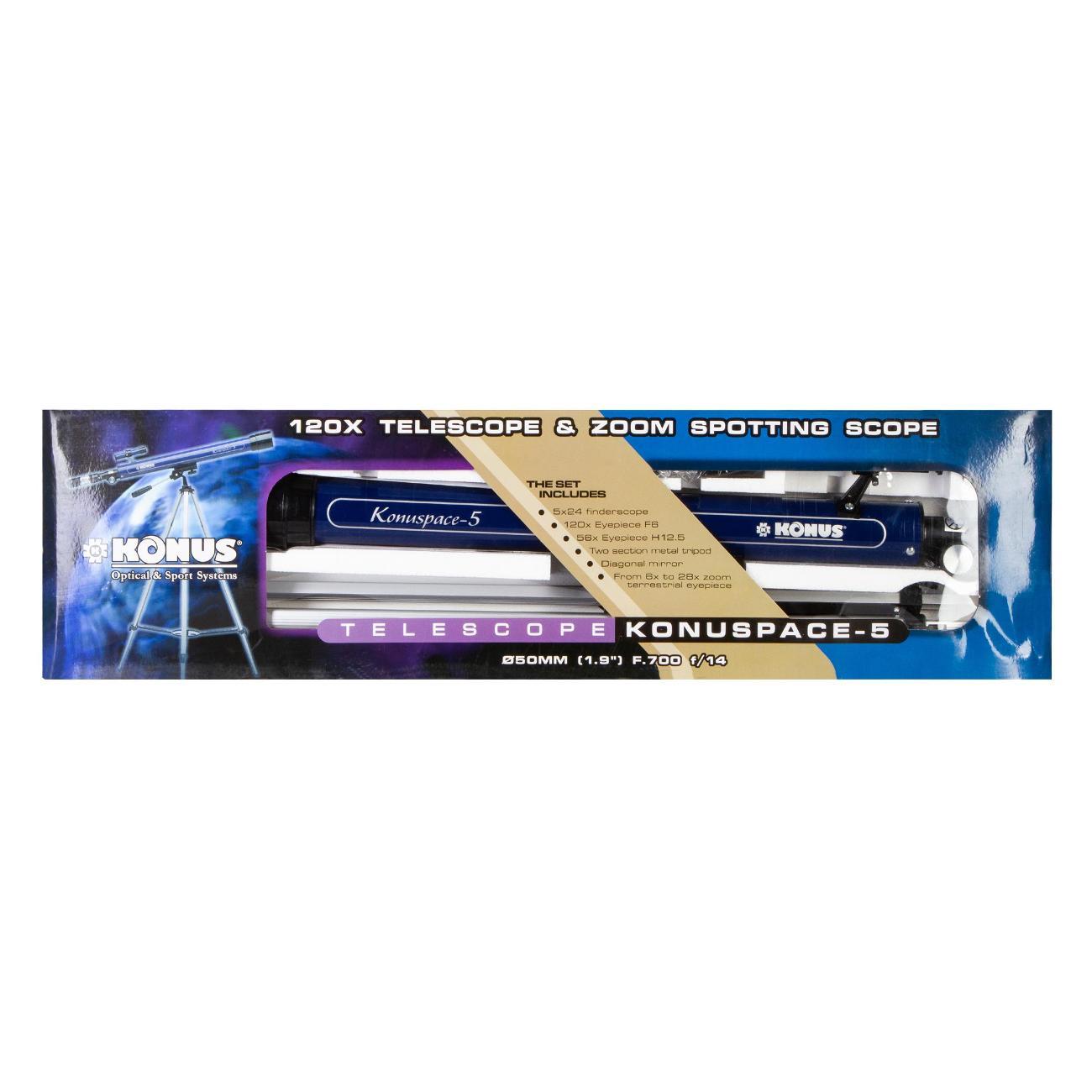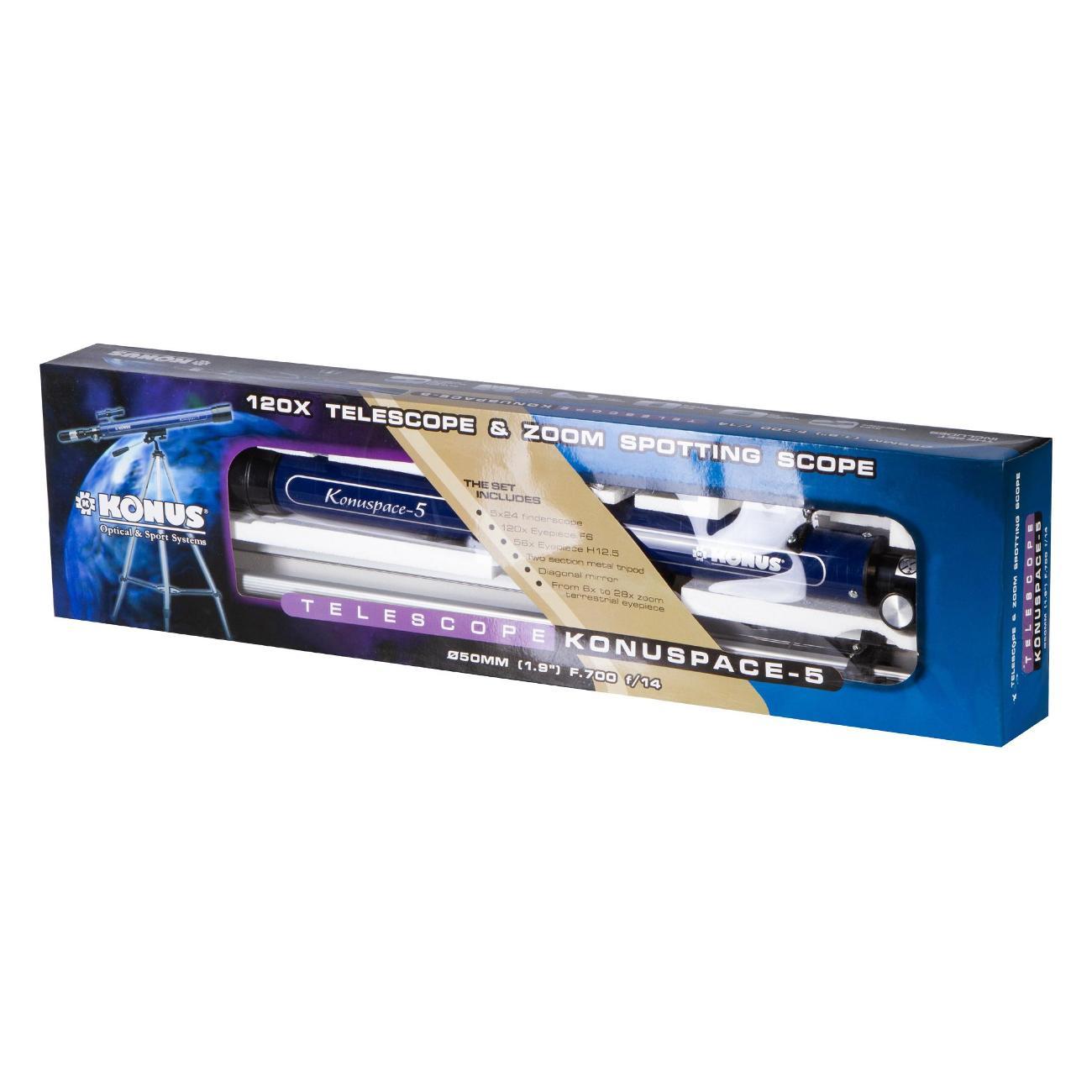 Телескоп Konus Konuspace-5 50/700 AZ – оптический инструмент начального уровня для изучения ближнего космоса и наземных объектов. Лучше всего в него наблюдать Луну, планеты же будут видны в виде ярких точек. А вот все, что находится на земле, получится рассмотреть детально – как в мощную зрительную трубу. Телескоп станет прекрасным подарком любознательному ребенку, познакомит его с основами астрономии и позволит интересно и полезно провести свободное время.