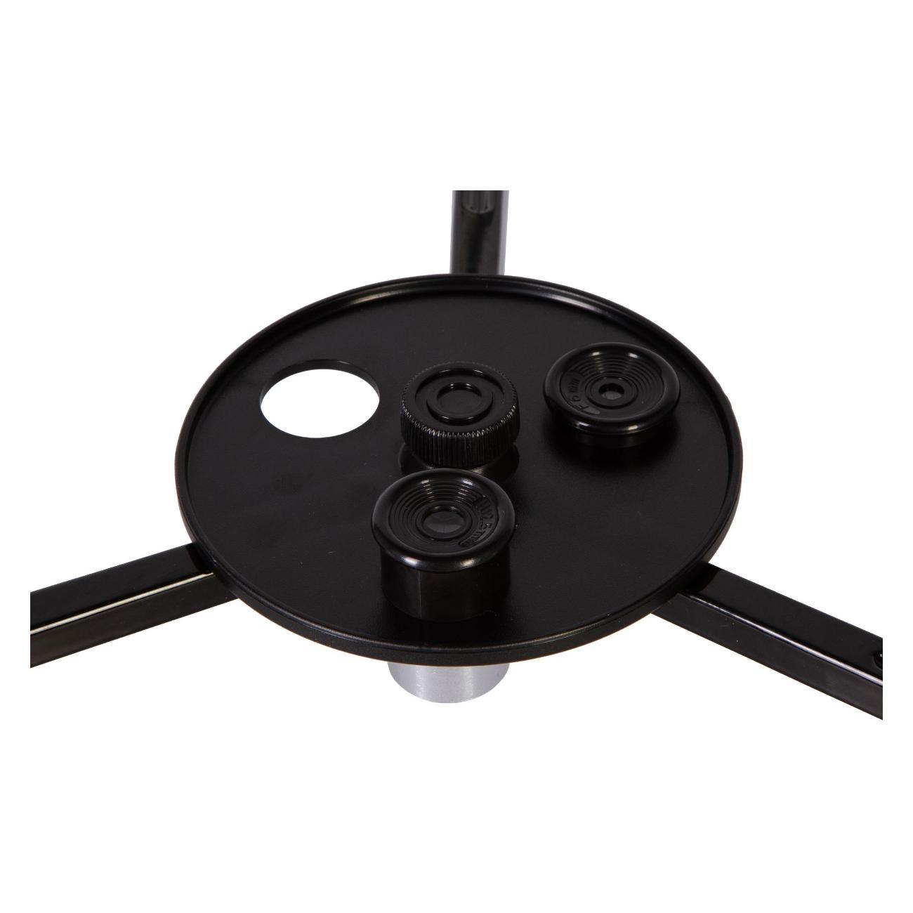 Телескоп установлен на базовую азимутальную монтировку. Для наведения используется специальная ручка управления, которая позволяет перемещать трубу вправо-влево и вверх-вниз. Тренога выполнена из алюминия, ее высоту можно регулировать, есть лоток для аксессуаров. В комплектацию включены все необходимые для наблюдений принадлежности.