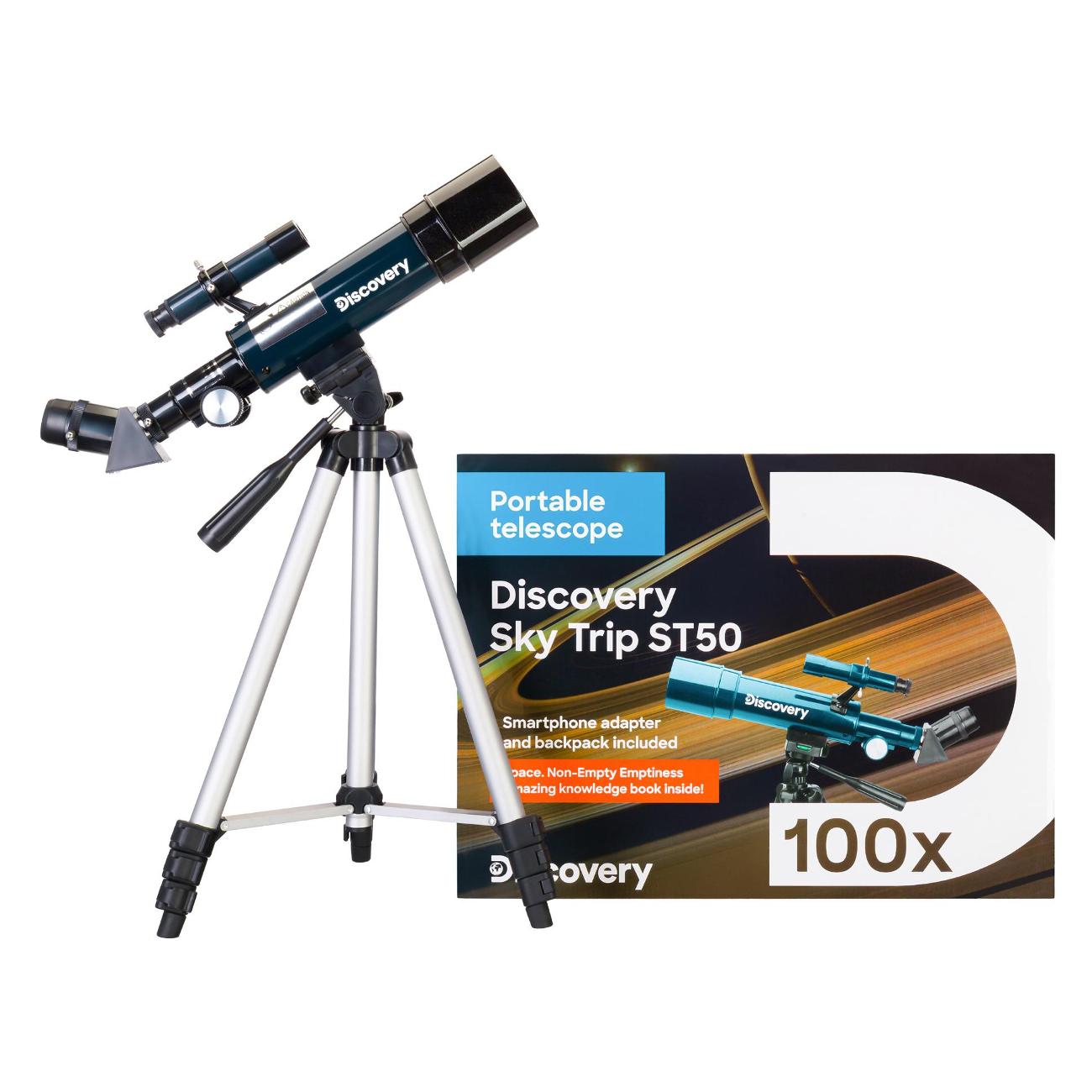 Телескоп Levenhuk Discovery Sky Trip ST50 — удобный и простой в эксплуатации рефрактор, подходящий для наблюдения за объектами, которые находятся в Солнечной системе. Может использоваться для рассматривания отдаленных наземных объектов. Перемещение и наведение оптической трубы производится при помощи азимутальной монтировки. Максимальная величина полезного увеличения достигает 100х. Объектив обладает диаметром 50 мм. Фокусное расстояние сравнительно небольшое — 360 мм.