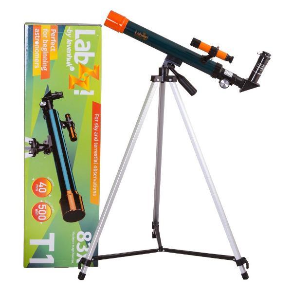 Телескоп Levenhuk LabZZ T1 — прибор с оптическим стеклом, оснащенный 40-миллиметровым объективом. Величина фокусного расстояния — 500 мм. Для перемещения и настройки положения трубы используется азимутальная монтировка — удобная и интуитивно понятная. Полезное увеличение достигает 80х. Это позволяет заниматься исследованием не только Луны, но и ряда других объектов, в том числе дальнего космоса. Тренога из алюминия — регулируется по высоте в пределах 650х1150 мм. Предусмотрен оптический искатель 2х. Труба выполнена из пластика. Окуляры обладают посадочным диаметром в 0,96". Размеры телескопа составляют 8х8х72 см.