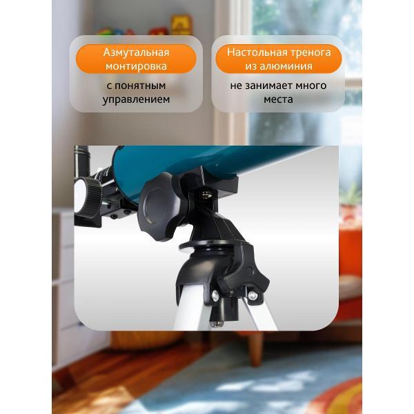 Телескоп Levenhuk LabZZ TK50 – это детская модель ахроматического рефрактора, которая позволяет наблюдать Луну и наземные объекты. Яркие звезды и некоторые планеты Солнечной системы тоже можно увидеть, но только в идеальных условиях и без какой-либо детализации. В основном это телескоп для лунных наблюдений, который обеспечивает хороший обзор и достойное разрешение картинки.