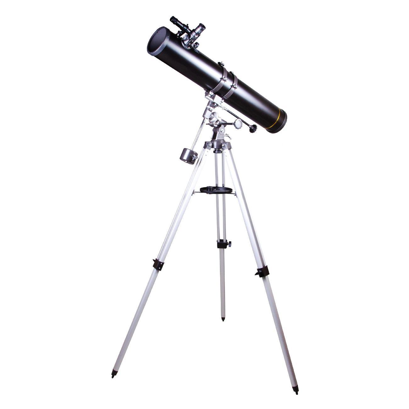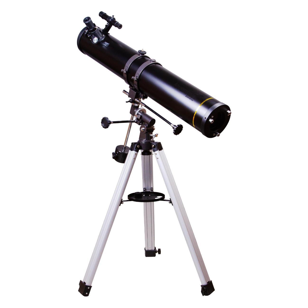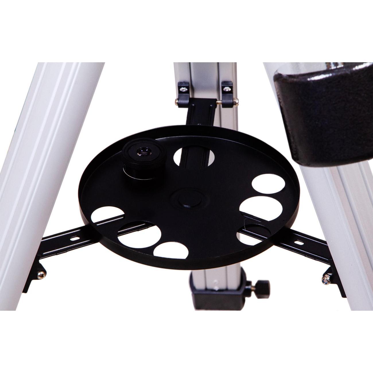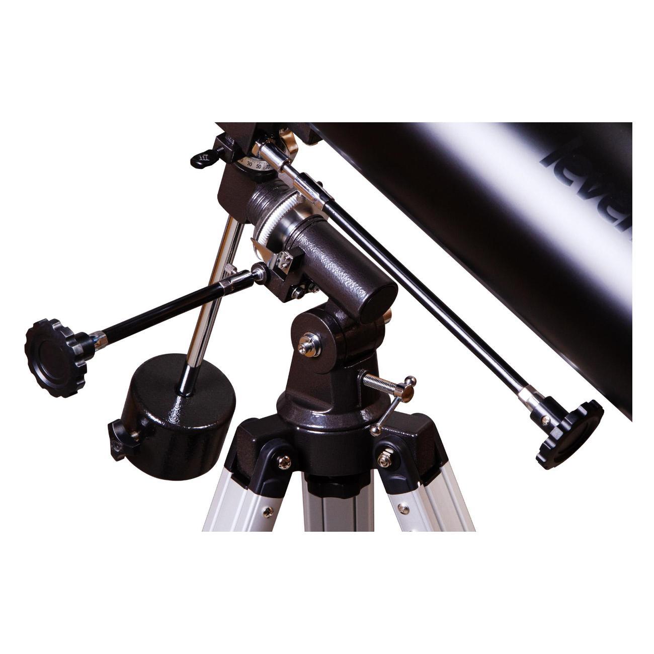 Телескоп подойдет и начинающим, и опытным любителям астрономии. Он установлен на монтировку экваториального типа, которая позволяет быстро наводиться на интересующие вас объекты и не терять их из виду даже во время длительных наблюдений. На освоение управления требуется время, но амбициозный новичок вряд ли посчитает это препятствием. Монтировка крепится к алюминиевой треноге, высоту ножек которой можно регулировать. Есть лоток для аксессуаров.