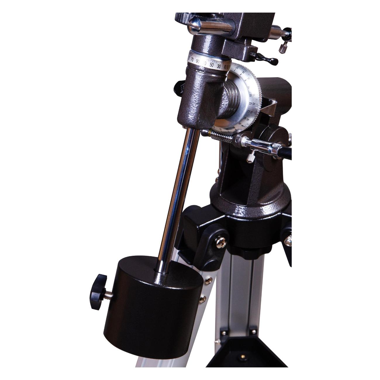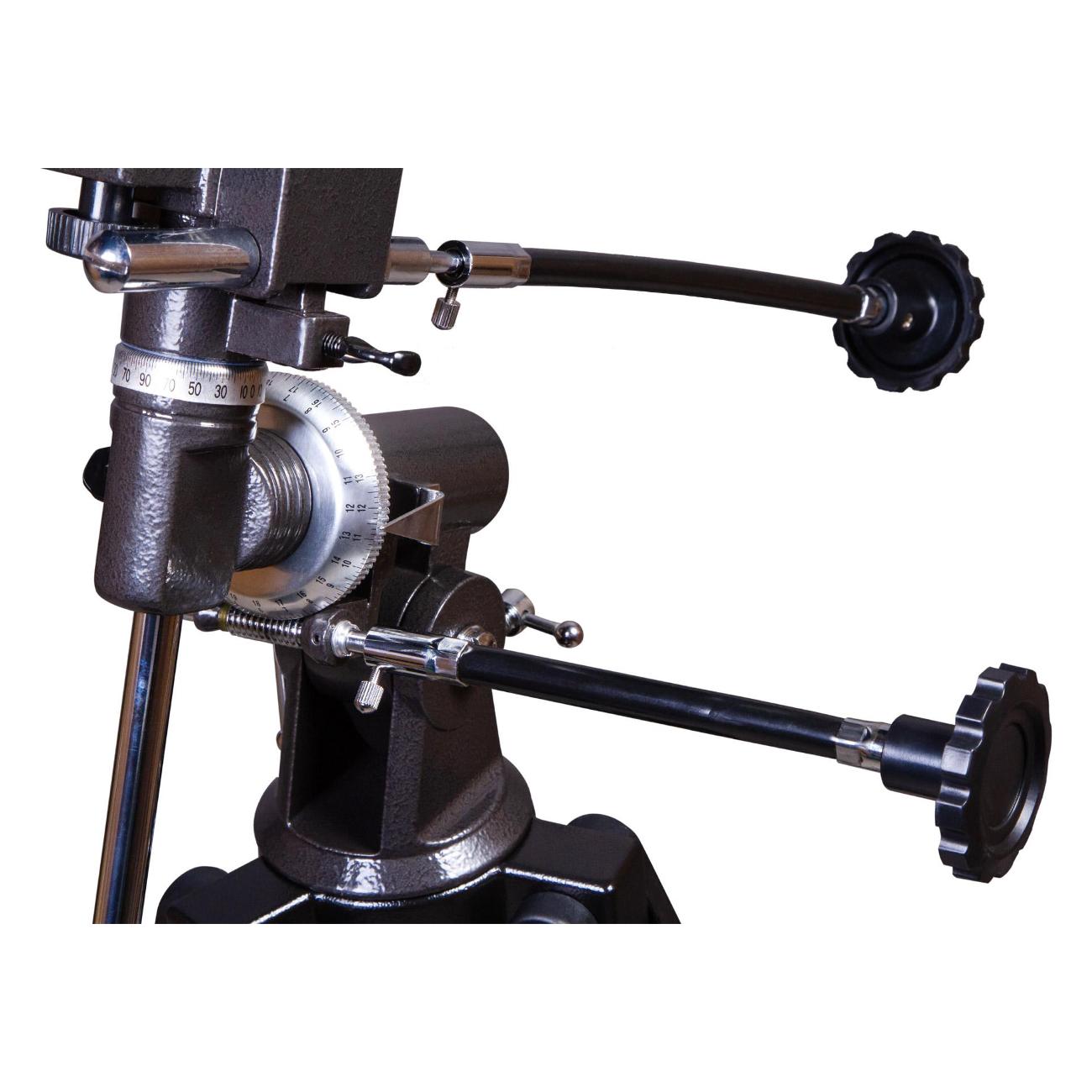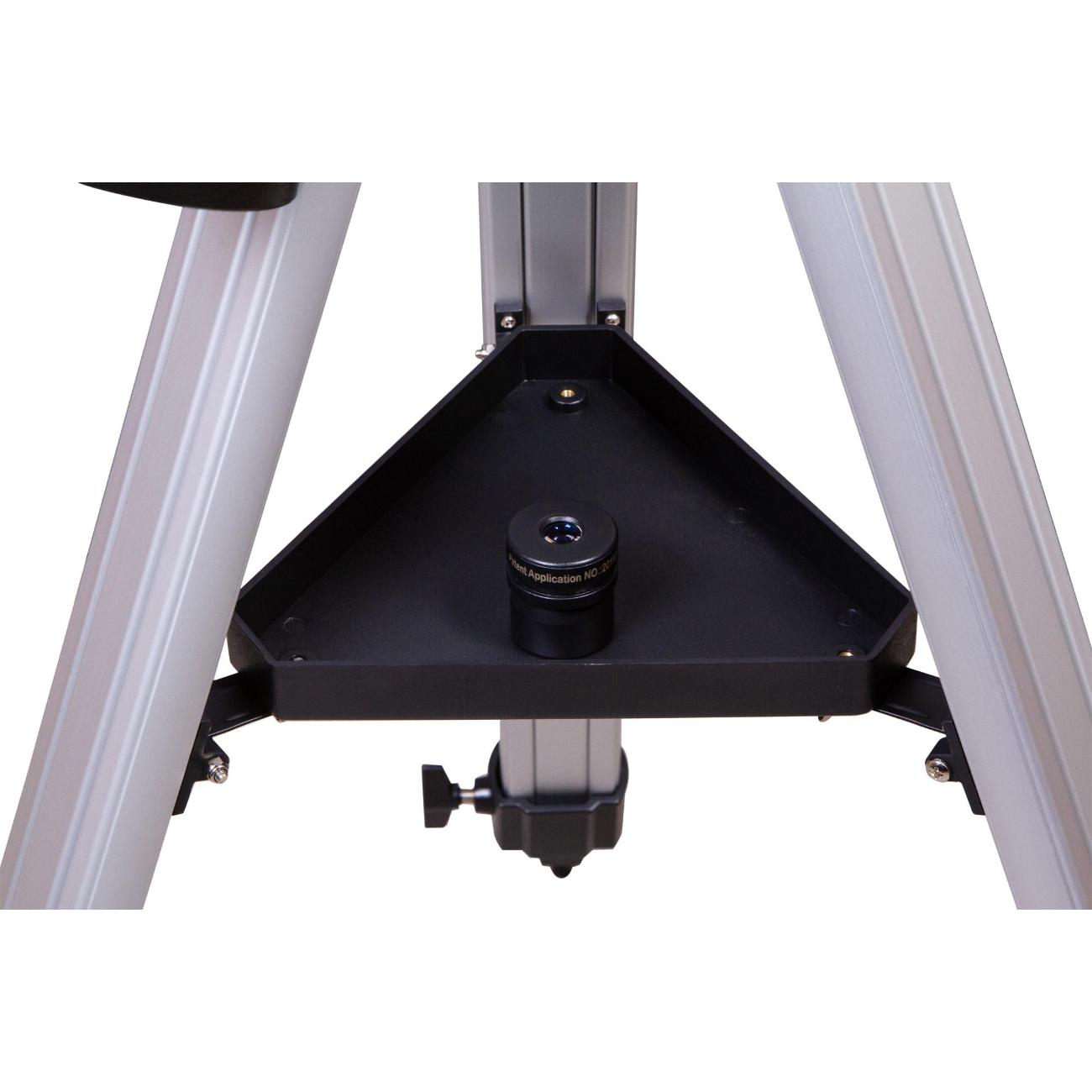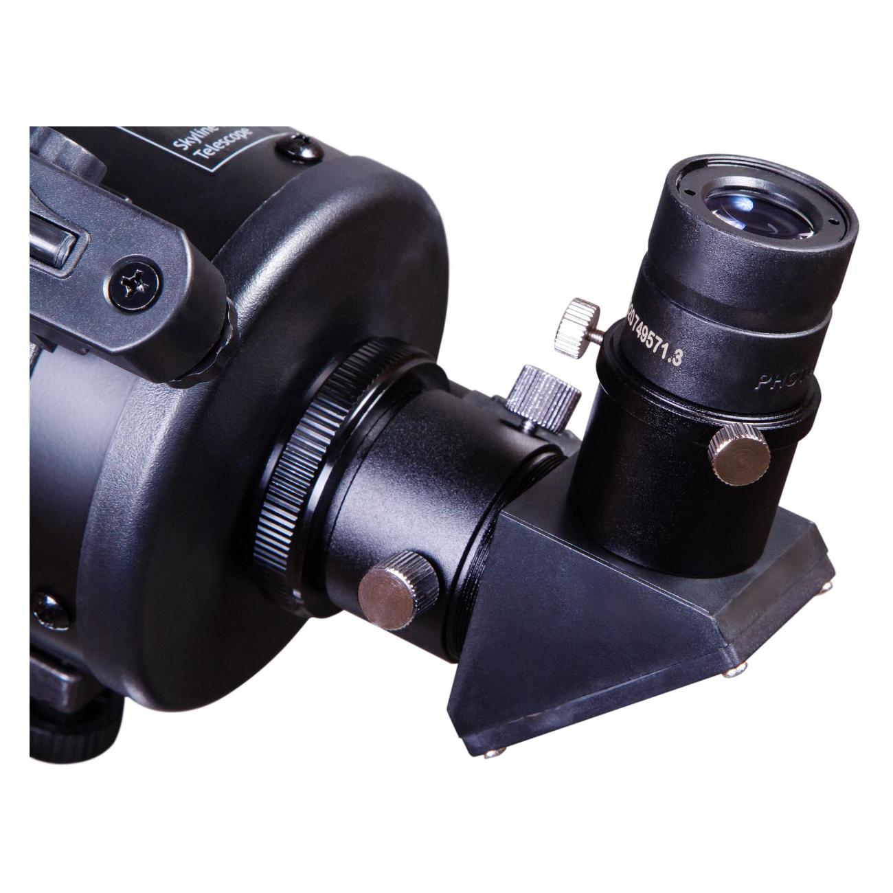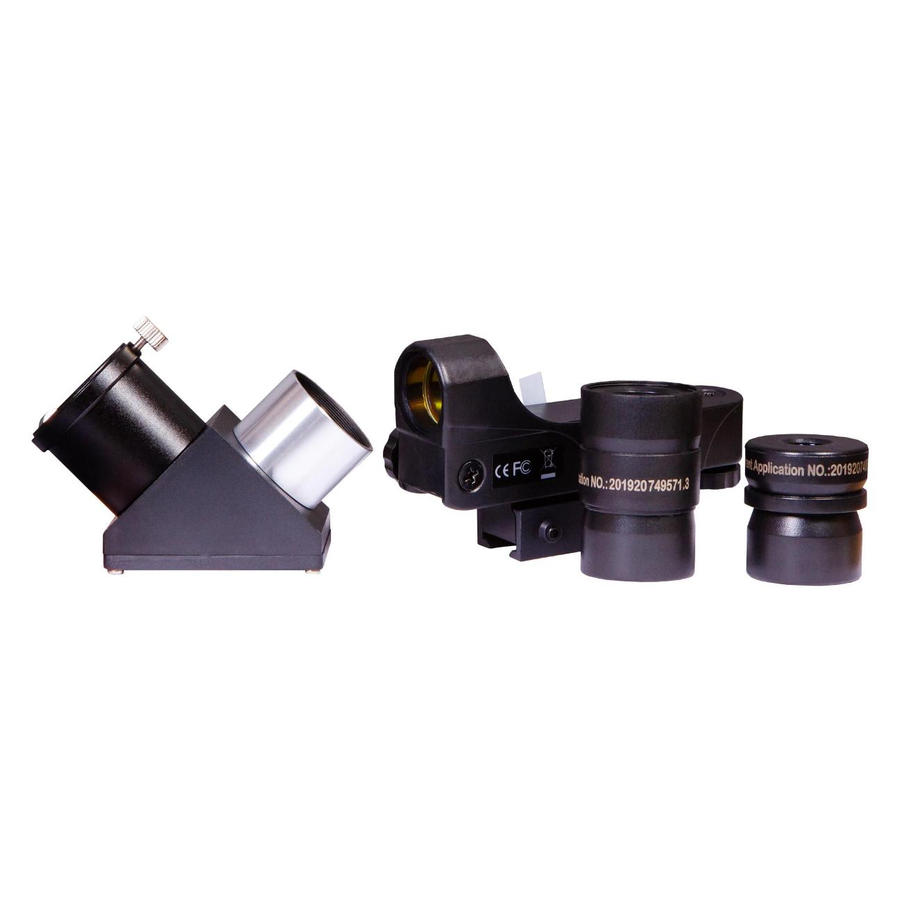 Корпус выполнен из металла и окрашен в черный цвет. В базовый набор входят два окуляра — 10 мм (125х), 20 мм (62,5х). Наведение телескопа — ручное, используется искатель с красной точкой. Монтировка фиксируется к треноге, выполненной из алюминия, на который размещается отсек для аксессуаров. В случае необходимости высоту ножек штатива можно изменять (от 71 см до 123 см). В комплекте поставляются монтировка, искатель, противовес, штатив.