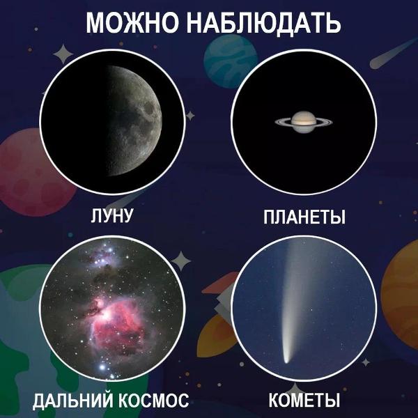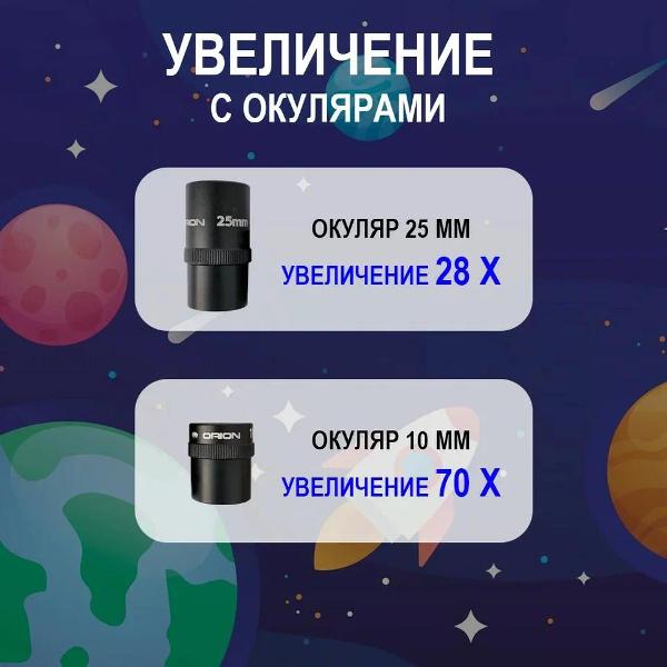 В качестве линз предустанавливается сферическое зеркало. В комплекте поставляются окуляры диаметром 10 мм и 25 мм. Фокусное расстояние не превышает 700 мм. Диаметр объектива — 76 мм. Кратность увеличения варьируется от 11х до 152х. Реализована просветленная оптика. Предустанавливается удобный искатель с лазерной точкой. В комплекте поставляются карта Луны и окуляры.