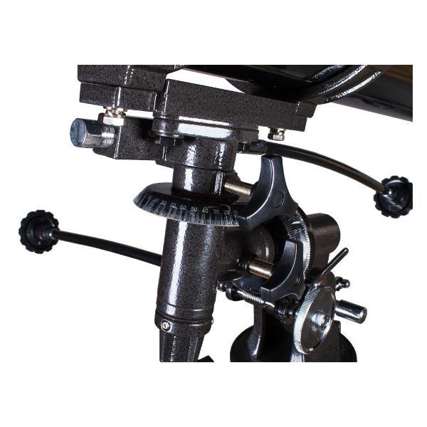 Экваториальная монтировка EQ2 оснащена механизмами тонких движений по обеим осям, поэтому перемещение оптической трубы осуществляется плавно и ровно. Для астрофотографии рекомендуется установить моторный привод на ось прямого восхождения. Алюминиевая тренога обеспечивает устойчивое положение телескопа. Высота ножек регулируется. Тренога снабжена лотком для аксессуаров.