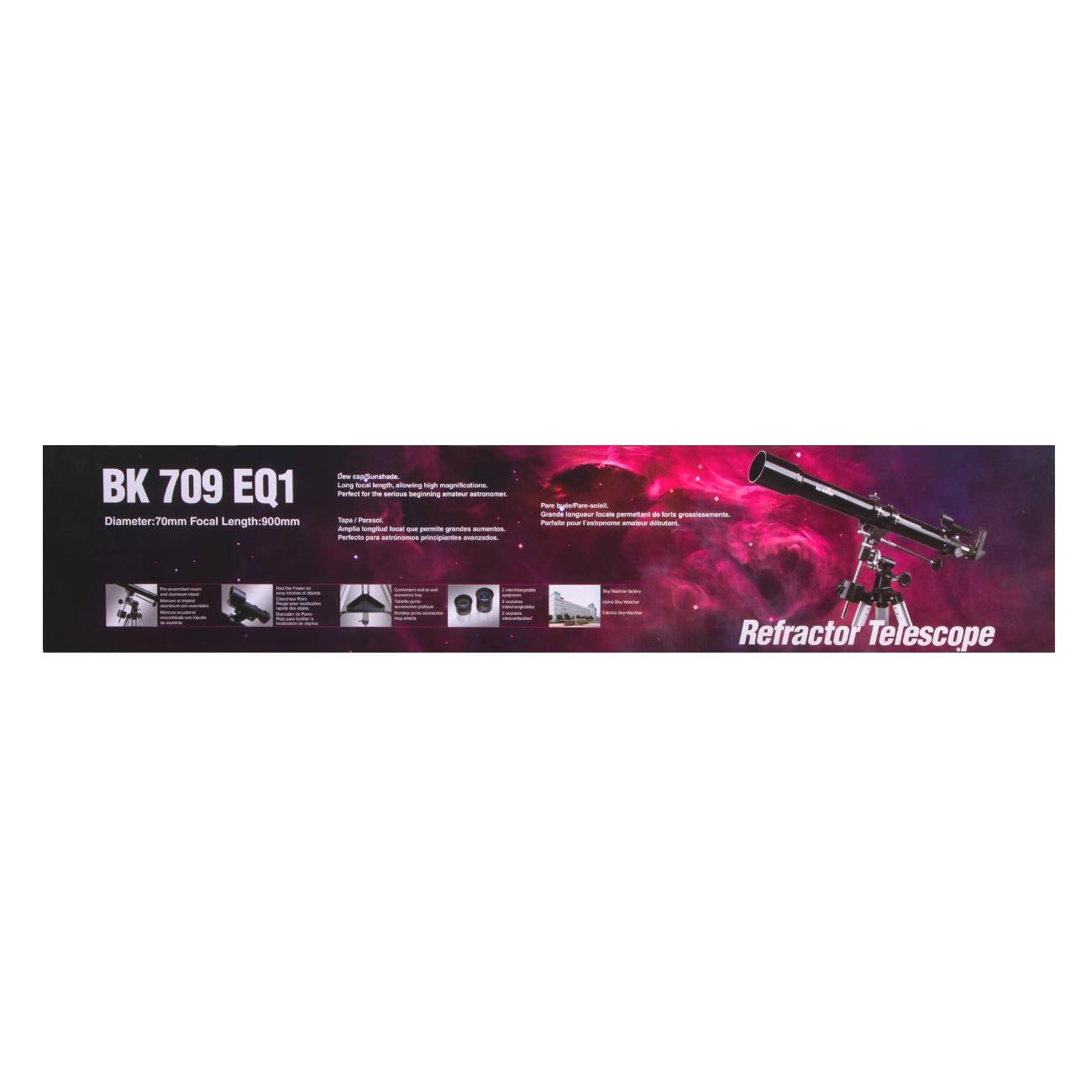 Оптическая труба установлена на экваториальную монтировку EQ1. Она управляется вручную при помощи двух ручек тонкой настройки. Тренога сделана из алюминия и имеет регулировку по высоте. Есть лоток для аксессуаров.