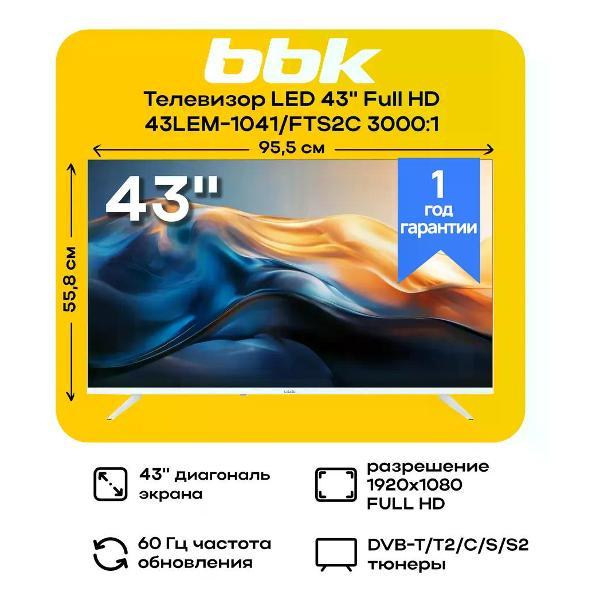 Вы можете купить Телевизор BBK 43LEM-1041/FTS2C (W) в магазинах М.Видео по доступной цене. Телевизор BBK 43LEM-1041/FTS2C (W): подробное описание, фото и отзывы реальных покупателей, характеристики, возможность скачать инструкции и подобрать аксессуары.