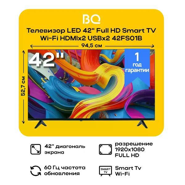 Вы можете купить Телевизор BQ 42FS01B в магазинах М.Видео по доступной цене. Телевизор BQ 42FS01B: подробное описание, фото и отзывы реальных покупателей, характеристики, возможность скачать инструкции и подобрать аксессуары.
