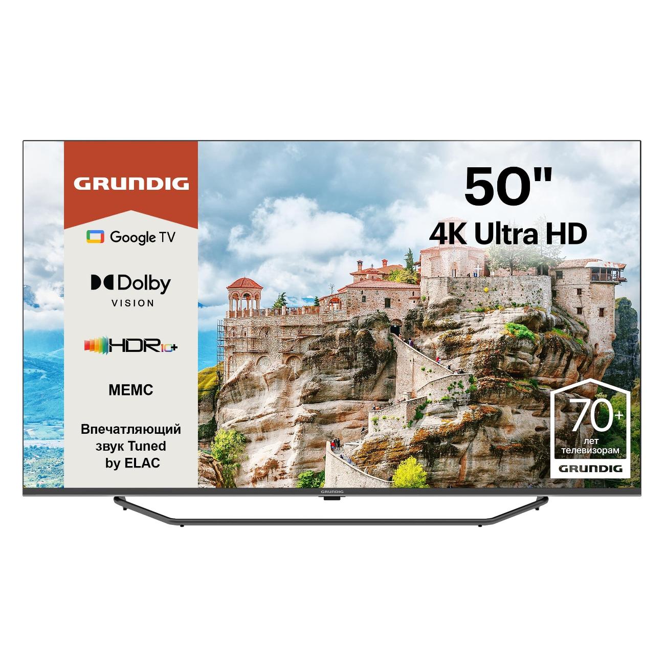 Телевизор Grundig 50 GHU 7980 с системой шумоподавления работает под управлением операционной системы Google TV седьмой серии, которая поддерживает технологию Smart TV, обеспечивает доступ к онлайн-кинотеатрам, стриминговым сервисам, мультимедийному контенту. Размер оперативной памяти прибора — 2 Гб. встроенной — 16 Гб. Для управления устройством предусмотрен пульт-указка с голосовым помощником. Поддержка Wi-Fi и Bluetooth позволяет контролировать работу со смартфона, через мобильное приложение Smart Remote.