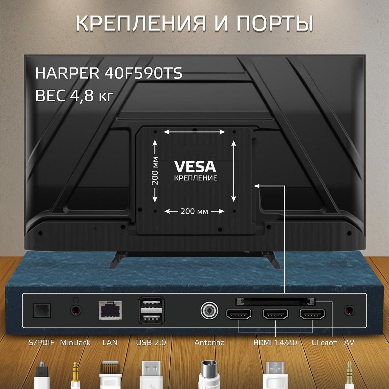 Вы можете купить Телевизор Harper 40F590TS в магазинах М.Видео по доступной цене. Телевизор Harper 40F590TS: подробное описание, фото и отзывы реальных покупателей, характеристики, возможность скачать инструкции и подобрать аксессуары.