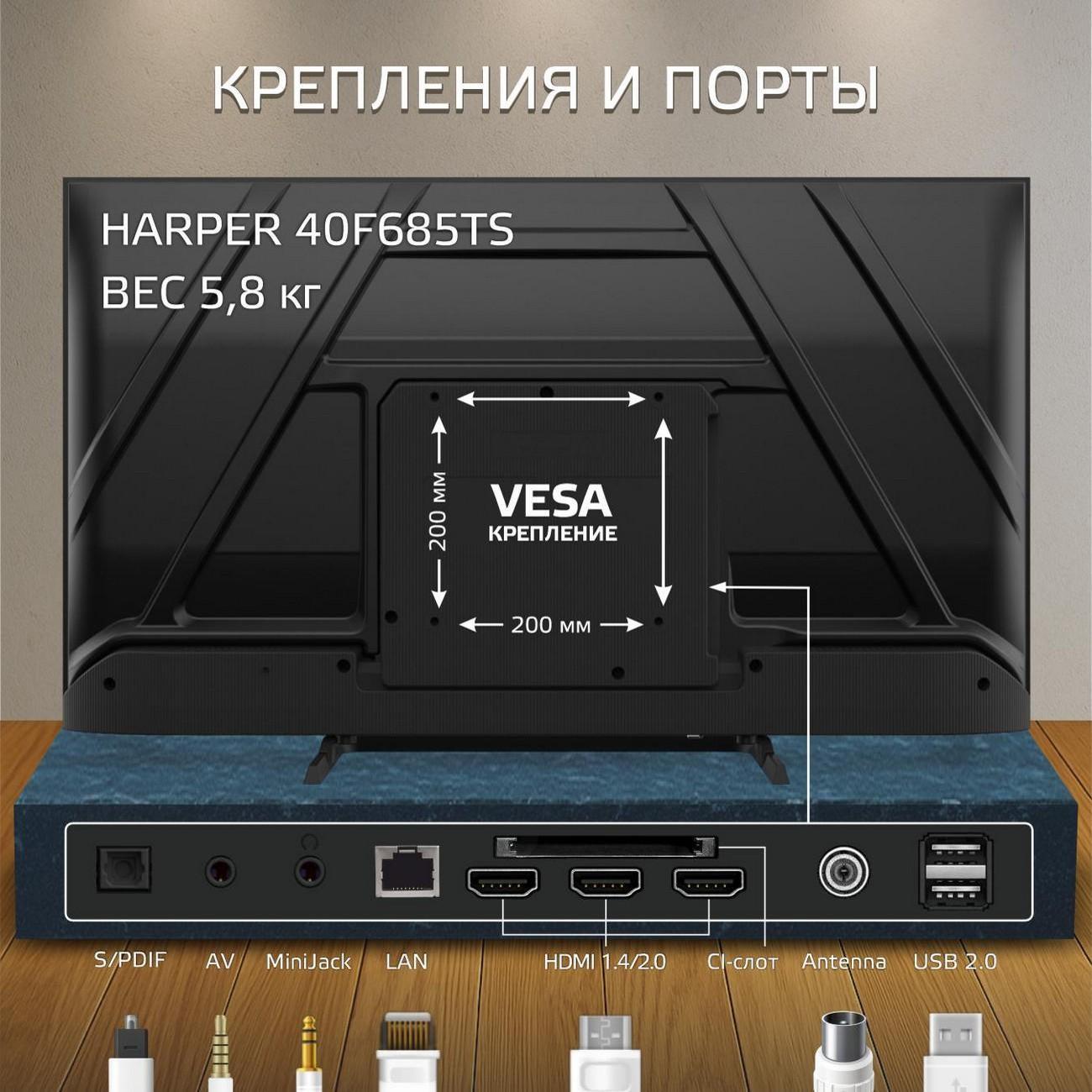 Вы можете купить Телевизор Harper 40F685TS в магазинах М.Видео по доступной цене. Телевизор Harper 40F685TS: подробное описание, фото и отзывы реальных покупателей, характеристики, возможность скачать инструкции и подобрать аксессуары.