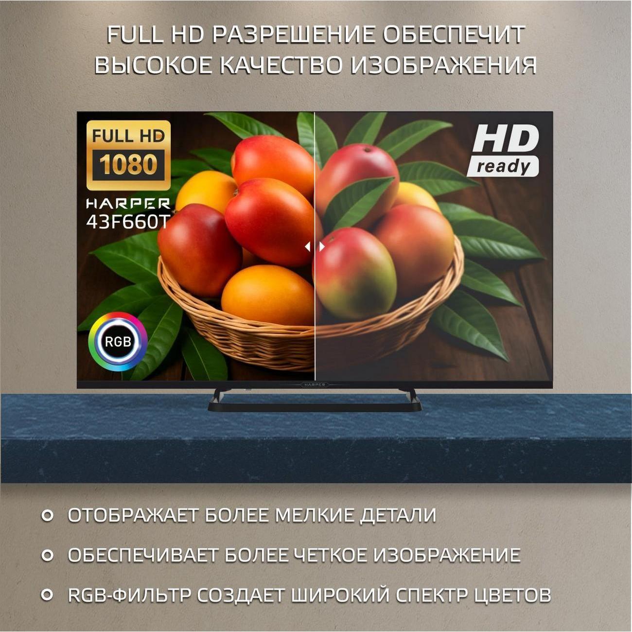 Вы можете купить Телевизор Harper 43 F 660 T в магазинах М.Видео по доступной цене. Телевизор Harper 43 F 660 T: подробное описание, фото и отзывы реальных покупателей, характеристики, возможность скачать инструкции и подобрать аксессуары.