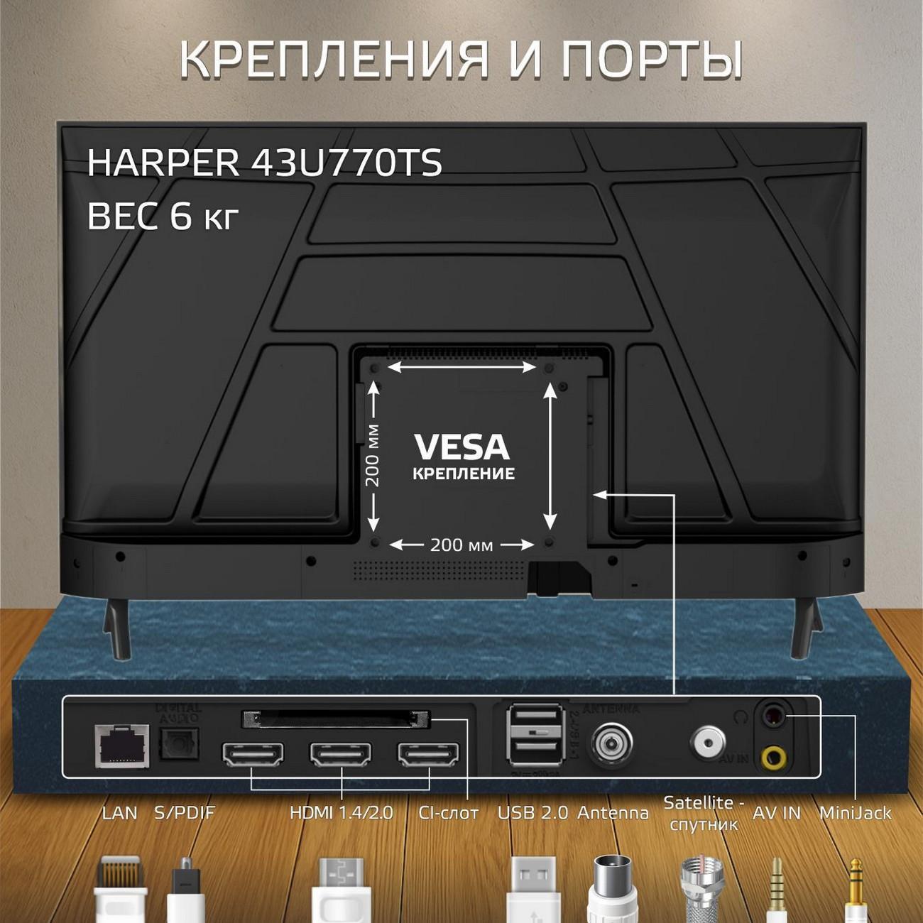 Вы можете купить Телевизор Harper 43U770TS в магазинах М.Видео по доступной цене. Телевизор Harper 43U770TS: подробное описание, фото и отзывы реальных покупателей, характеристики, возможность скачать инструкции и подобрать аксессуары.