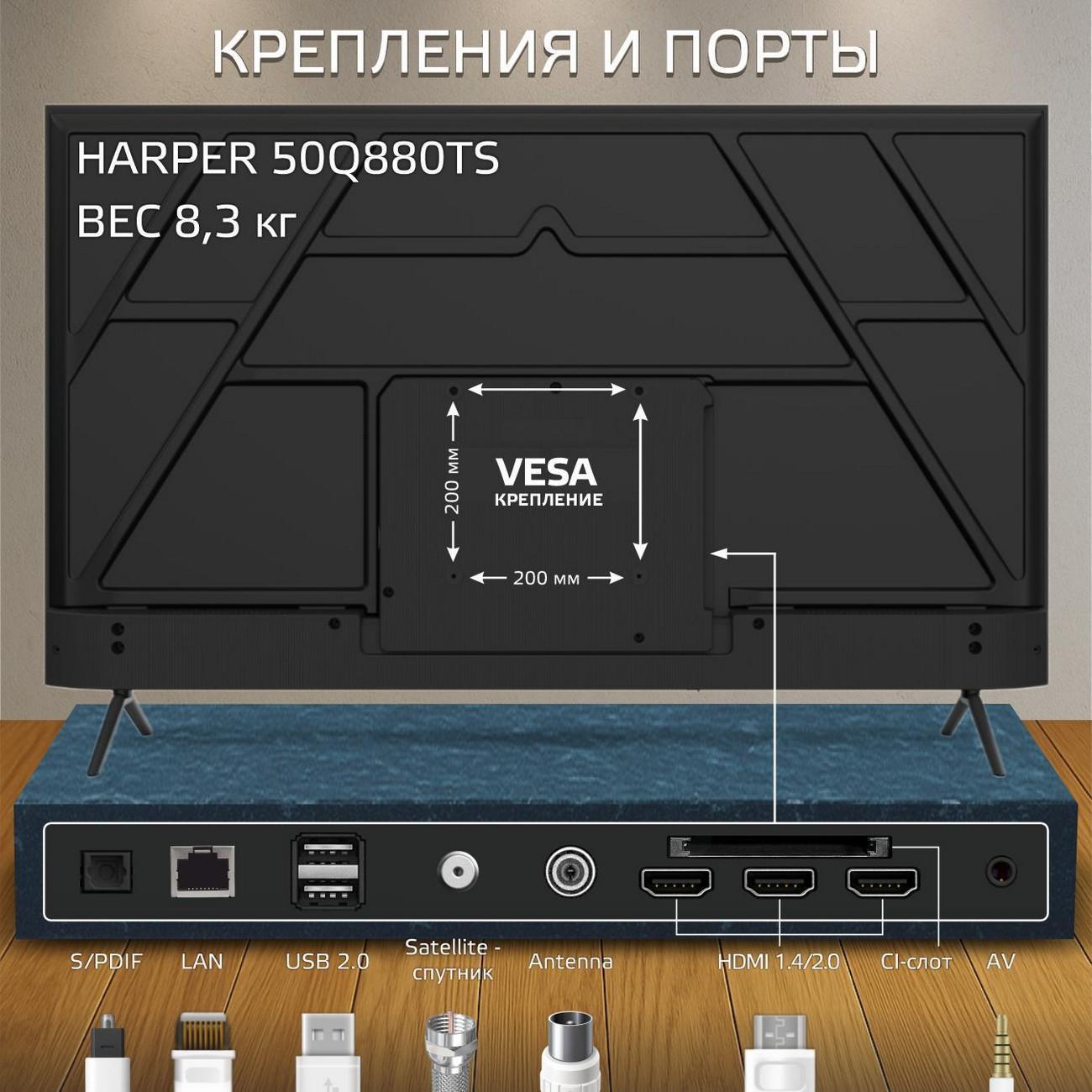 Вы можете купить Телевизор Harper 50Q880TS в магазинах М.Видео по доступной цене. Телевизор Harper 50Q880TS: подробное описание, фото и отзывы реальных покупателей, характеристики, возможность скачать инструкции и подобрать аксессуары.