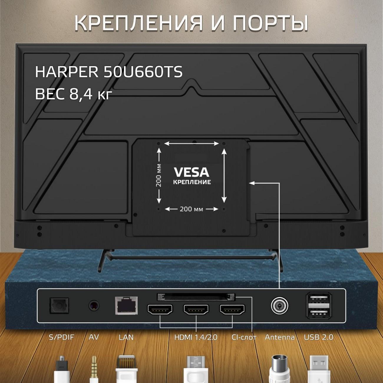 Вы можете купить Телевизор Harper 50U660TS в магазинах М.Видео по доступной цене. Телевизор Harper 50U660TS: подробное описание, фото и отзывы реальных покупателей, характеристики, возможность скачать инструкции и подобрать аксессуары.