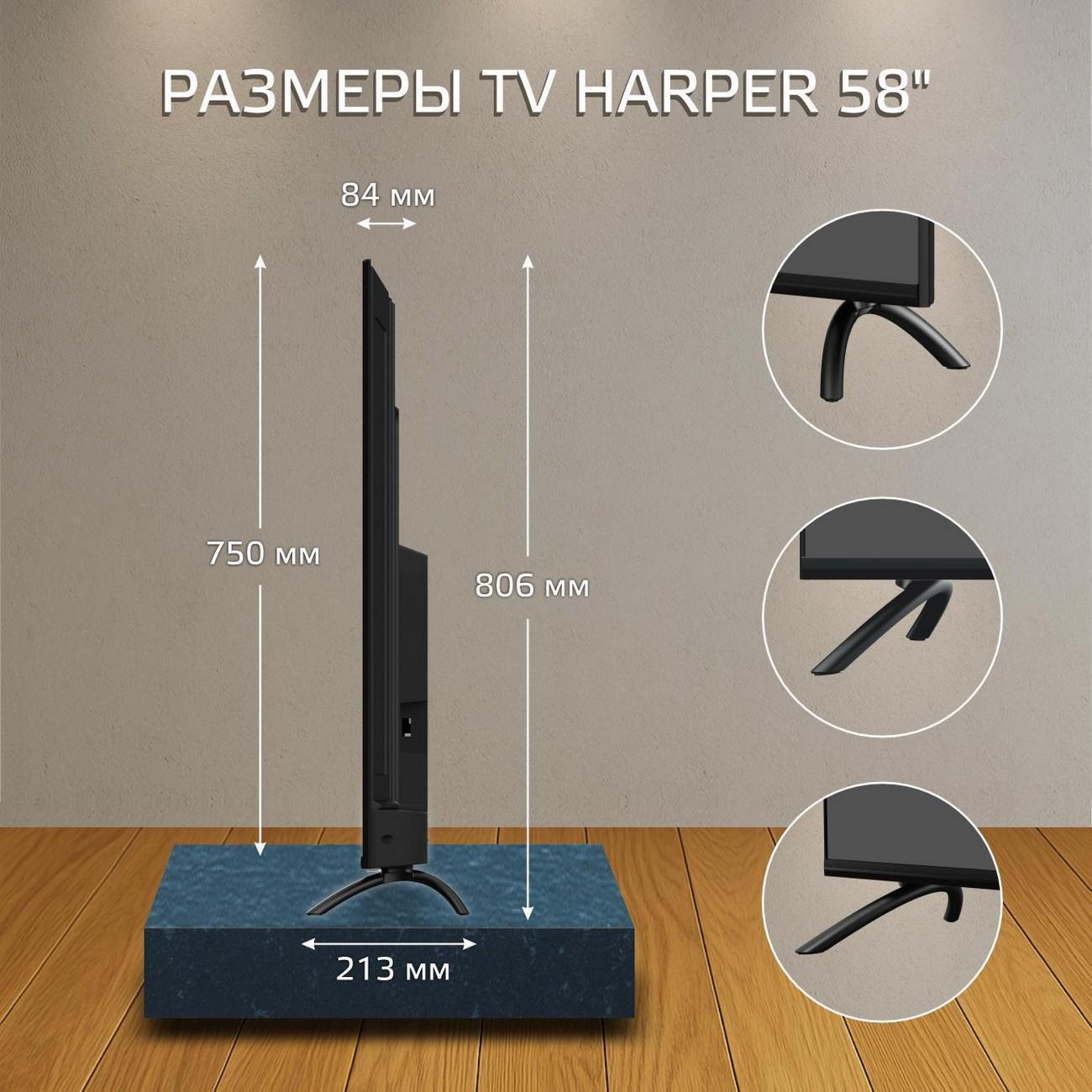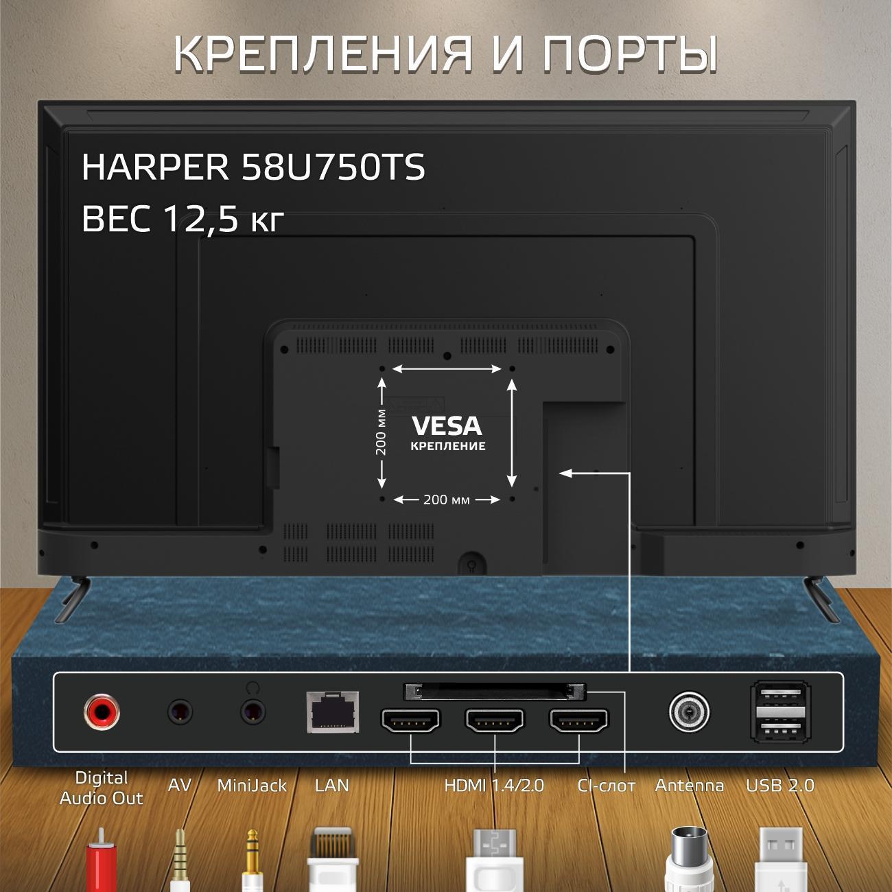 Вы можете купить Телевизор Harper 58U750TS в магазинах М.Видео по доступной цене. Телевизор Harper 58U750TS: подробное описание, фото и отзывы реальных покупателей, характеристики, возможность скачать инструкции и подобрать аксессуары.