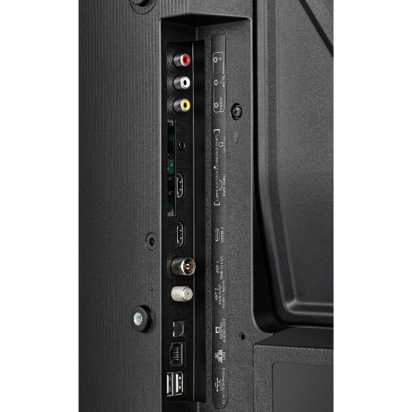 Мощность акустической системы с функцией автоматического выравнивания громкости — 12 Вт. Интерфейсы подключения представлены двумя разъемами HDMI, двумя портами USB, WI-Fi-модулем с поддержкой частоты 2,4 ГГц и двумя RF-тюнерами. С телевизором совместим VESA-кронштейн размером 200х200 мм.