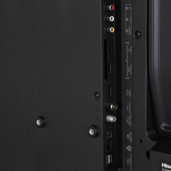 Устройство оснащено модулями беспроводного соединения Wi-Fi и Bluetooth, двумя входами HDMI 1.4, двумя портами USB 2.0 типа А, разъемами 3,5 мм, DVB CAM и LAN. Прибор питается от стандартной электросети, потребляя 65 Вт. Модель с габаритами 43х72,6х8,5 см и весом 3,8 кг монтируется настенным способом с помощью крепления VESA 200х200. Для настольного размещения задействуется подставка шириной 69 мм, с учетом которой размер изделия равен 47,9х18,6х72,6 см.