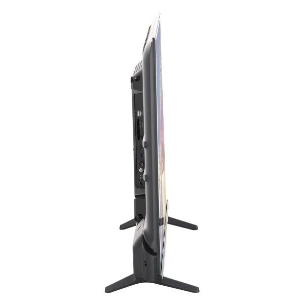 Стереозвучание достигается благодаря двум фронтальным динамикам NICAM по 10 Вт и низкочастотным излучателям мощностью 20 Вт. Модель с потреблением 75 Вт питается от стандартной электросети. Изделие размером 96,3х7,4х56 см и весом 6,8 кг монтируется настенным способом за счет крепления VESA 200х300. Ножки-опоры для настольного размещения входят в комплектацию. С учетом подставки габариты равны 61,4х96,3х19,6 см и 6,9 кг.