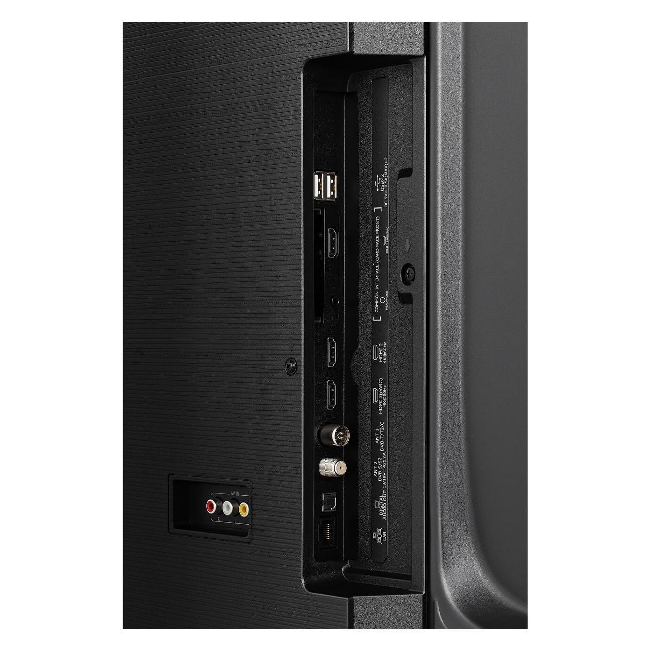 На интерфейсной панели расположены три входа HDMI версии 2.1, поддерживающие передачу видео высокого разрешения и многоканального звука. Два порта USB 2.0 типа A позволяют воспроизводить медиафайлы с внешних накопителей. Для подключения к проводной сети предусмотрен разъем RJ45. Оптический выход Toslink предназначен для передачи звука на внешнюю акустическую систему или ресивер. Слот для CI/PCMCIA поддерживает установку модулей условного доступа для просмотра закодированных каналов.