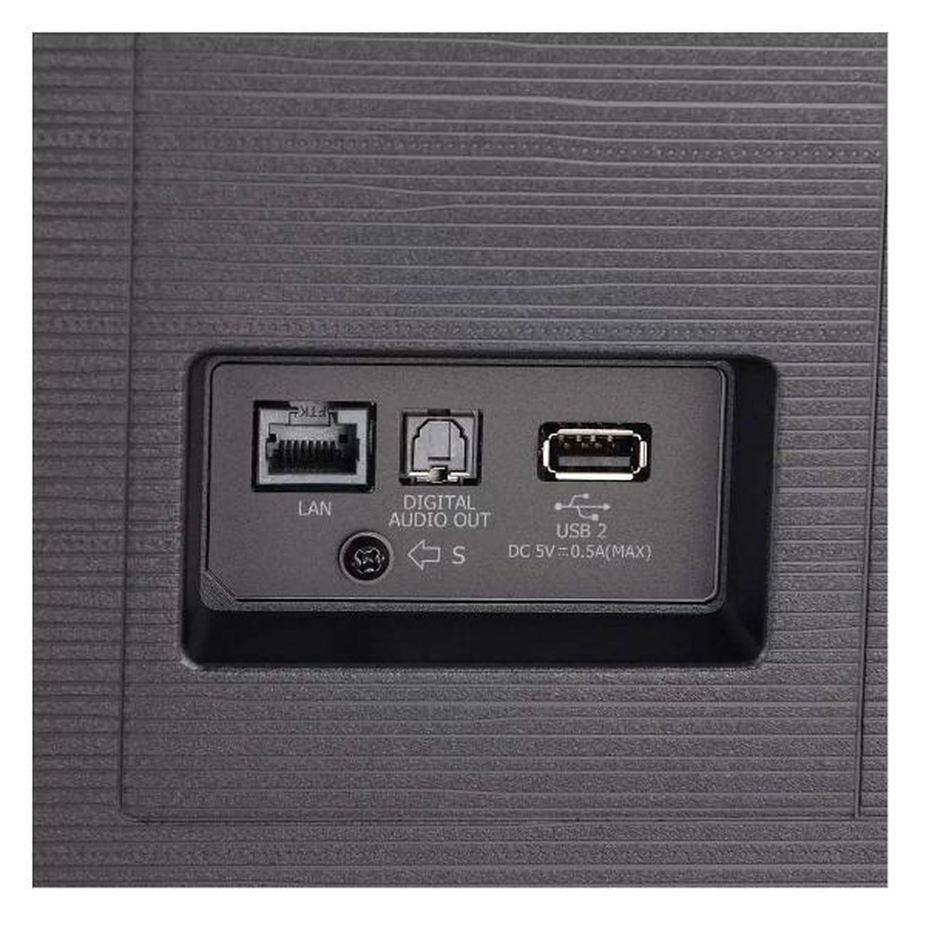 Модель оснащена цифровым DVB и аналоговым тюнерами PAL/SECAM для приема телевизионного сигнала и его декодирования. Защита от детей позволяет заблокировать панель управления. Набор интерфейсов состоит из HDMI (четыре), USB 2.0 тип A (два), разъема LAN (RJ45), разъема 3,5 мм. Настольная подставка входит в комплект. Предусмотрена возможность крепления на стену при помощи VESA 400x300. Корпус окрашен в темно-серый цвет. Габаритные размеры устройства без подставки — 78,4х123,3х30 см, вес — 19,4 кг.