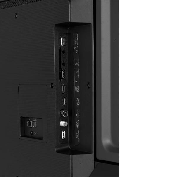 Подключение к интернету производится по Wi-Fi, можно использовать и кабель, для него интегрирован разъем LAN. Для подключения игровой консоли, звукового ресивера, колонок и прочего оборудования предусмотрены три входа HDMI, два порта USB 2.0 Type A, слот CI и разъем для подключения наушников (3,5 мм). Возможен обмен данными с совместимыми устройствами по Bluetooth.