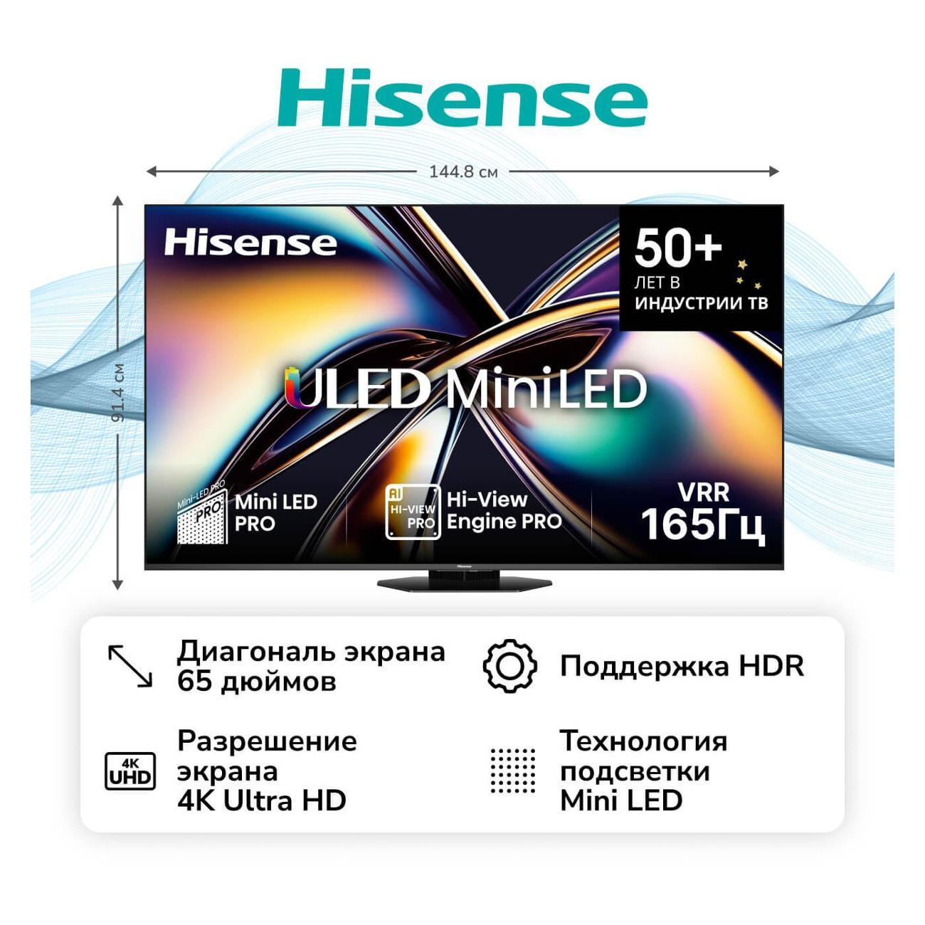 Hisense 65U8Q — телевизор с диагональю 65” (165 см).