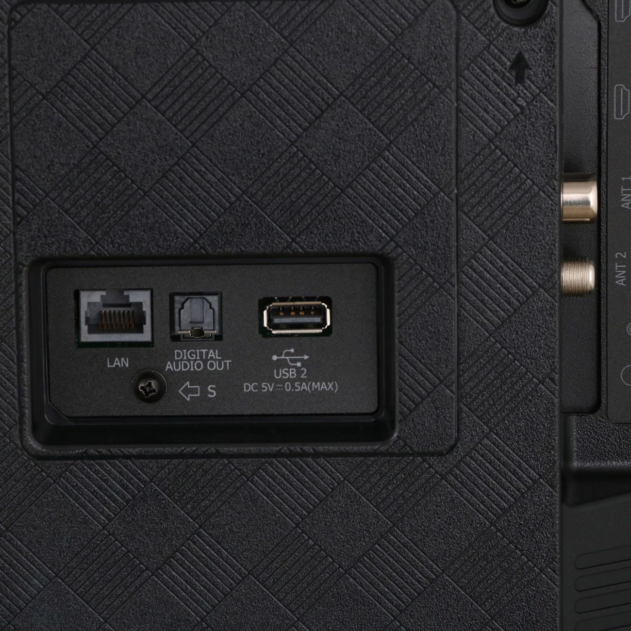 Устройство с потребляемой мощностью 200 Вт снабжено голосовым управлением. В комплект входит настольная подставка. Габариты: 104,4х167,6х37 см. Вес — 22,5 кг.