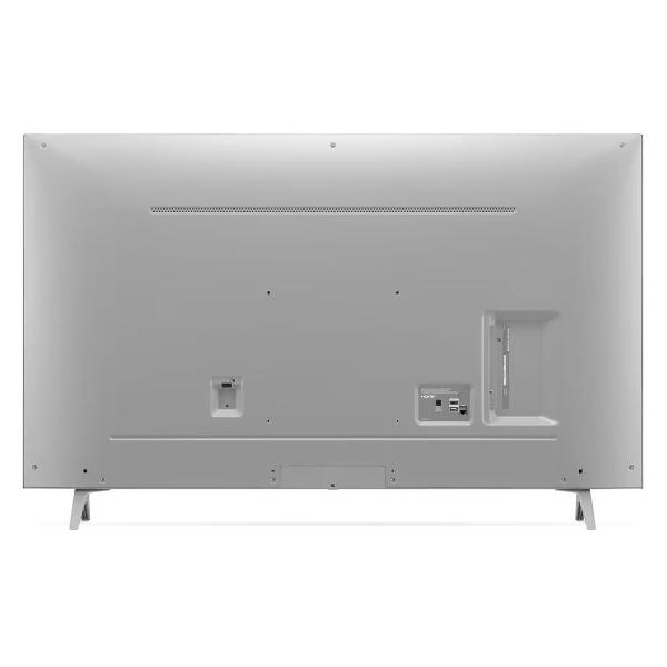 Подключение внешних устройств обеспечивают встроенные интерфейсы: три входа HDMI, два порта USB 2.0 типа A, LAN-разъем (RJ45). Встроен цифровой тюнер DVB T/T2/C/S/S2. Потребляемая мощность телевизора равна 55 Вт. Поддерживается фоновая подсветка. Цвет корпуса — серый. Телевизор укомплектован подставкой. Габаритные размеры — 62,2х96,7х21,6 см.