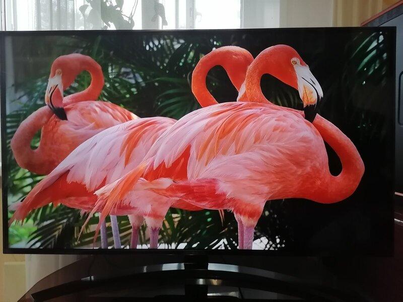 Картинка сочная, яркая, видео в 4К не тормозит ни капельки, телевизор стоит на подставке устойчиво.Пульт может выполнять функцию живой мыши, забавная штука, двигаешь пульт, а по экрану движется курсор.