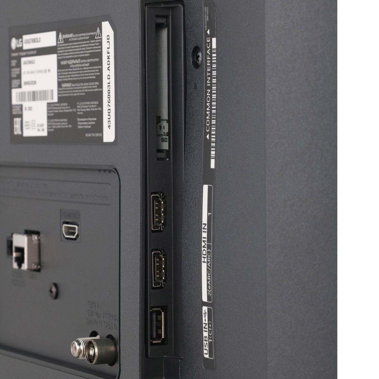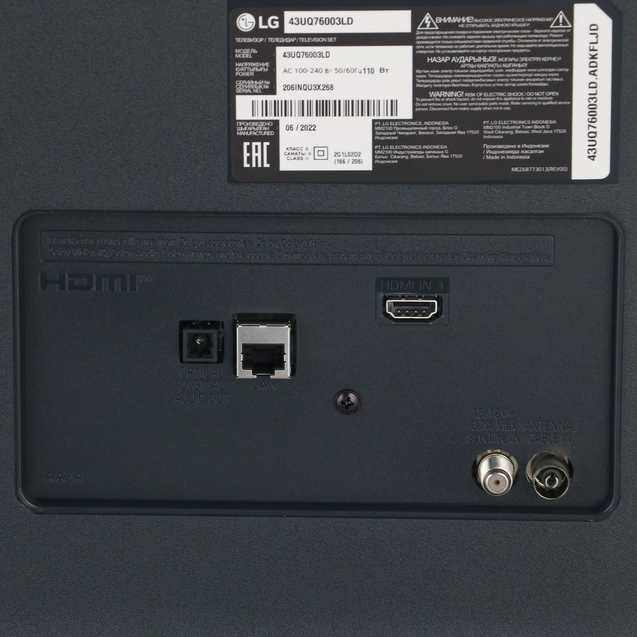 Акустическая система LG 43UQ76003LD мощностью 20 Вт поддерживает технологию адаптивного управления звуком AI Sound. Встроенный цифровой тюнер DVB обеспечивает доступ к телевизионным каналам. Для подключения устройств предусмотрены интерфейсы HDMI (два), LAN, mini jack, USB 2.0 Type-А. Встроенные модули Wi-Fi и Bluetooth поддерживают дистанционную связь телевизора с совместимым оборудованием.