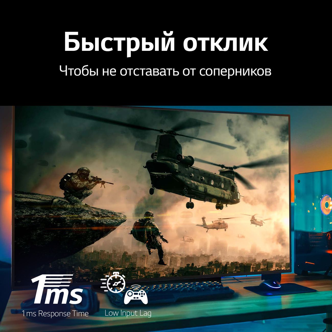 Телевизоры LG с OLED-экранами поддерживают видеокарты Nvidia G-Sync. Теперь в играх не будет задержек и лагов. Только чёткая и яркая картинка, которая плавно меняется даже в самых динамичных сценах. Этому же способствует и время отклика 1 мс.
