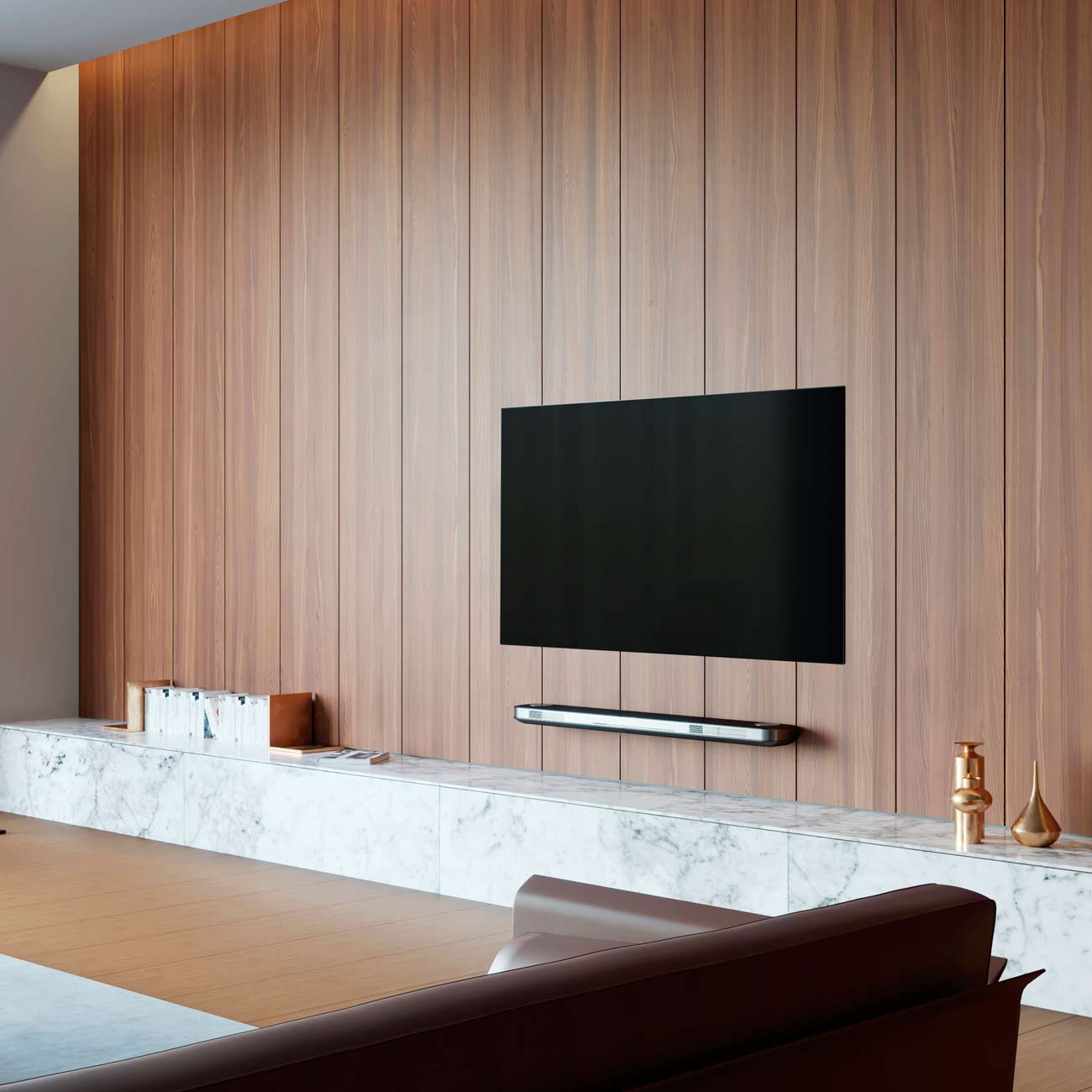 Отличительная особенность OLED-телевизора LG OLED77W8PLA – его небольшая толщина. Рамка практически не видна, что позволяет прибору идеально вписаться в окружающее пространство и создаёт впечатление полного присутствия.