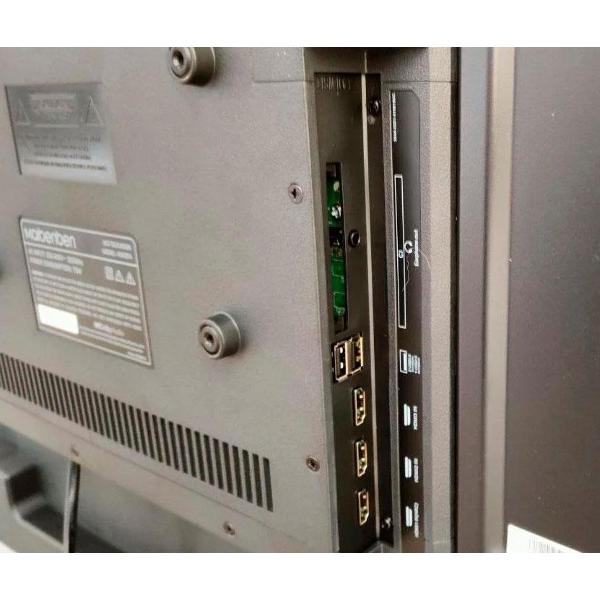 Телевизор оборудован акустической системой общей мощностью 50 Вт. В корпус встроены четыре входа HDMI и два порта USB Type-A. Прибор укомплектован подставкой, можно приобрести крепление VESA 200х100 и разместить телевизор на стене. Габариты устройства — 81,2х124,5х25,4 см, вес — 12,5 кг.