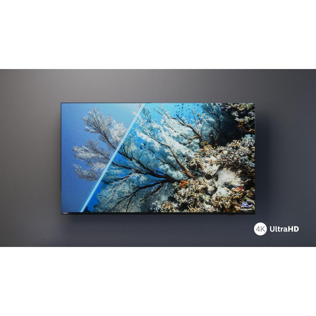Угол обзора экрана по вертикали и горизонтали составляет 178°, что позволяет просматривать изображение из любой точки помещения. Частота обновления кадров — 60 Гц. Присутствует поддержка HDR. Телевизор поддерживает Smart TV и может воспроизводить видео через USB. Предусмотрен встроенный таймер выключения, телетекст, гид по программам, защита от детей, функция Time Shift, функция записи телепередач (PVR). Установив специальное приложение на смартфон, его можно использовать вместо пульта.