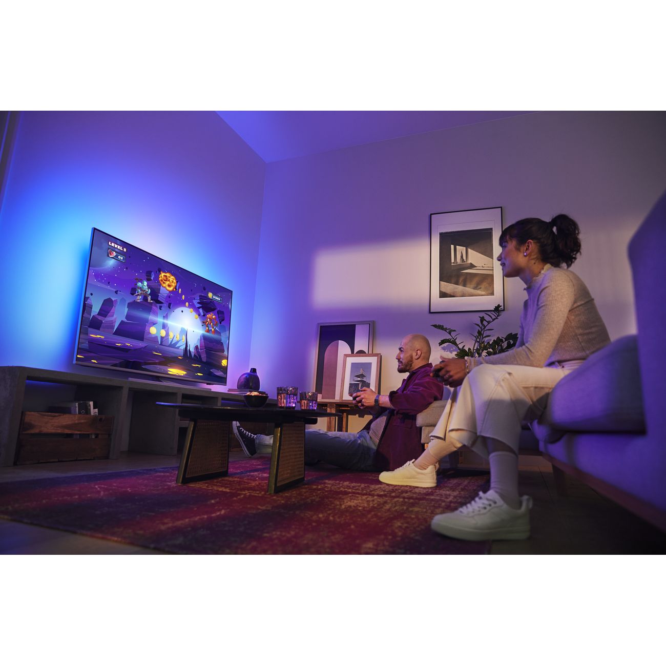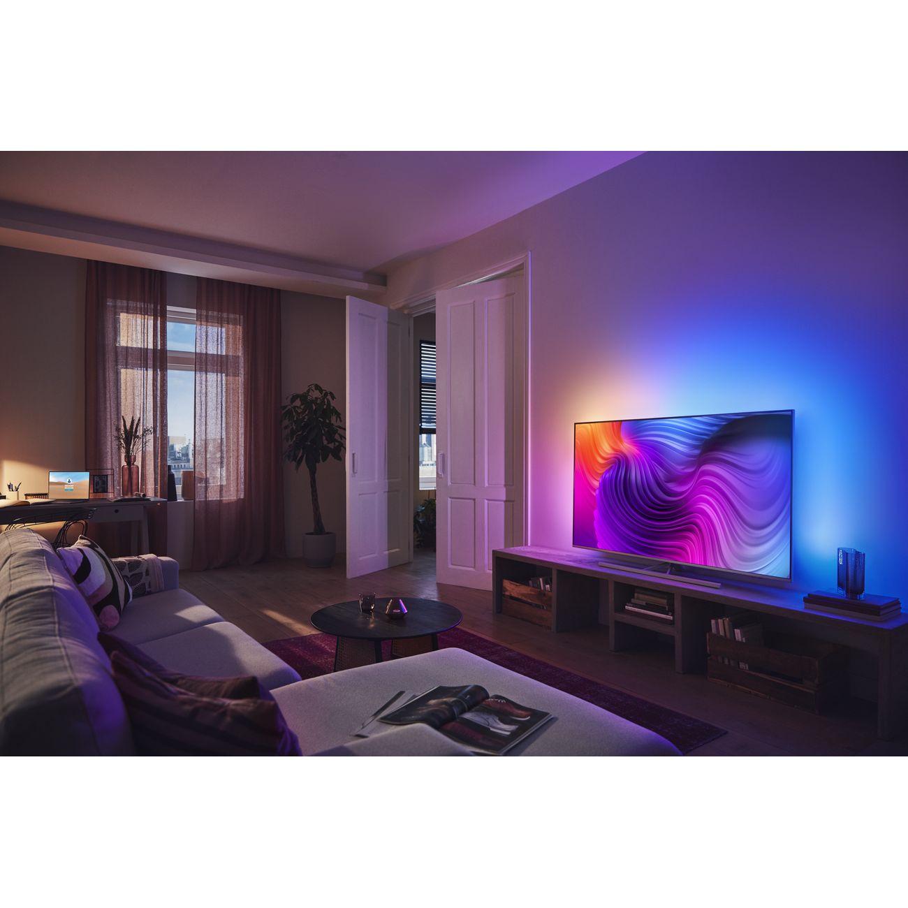 Уровень черного не OLED, но достойно даже без FALD. Амбилайт в темноте убирает косяк LED матриц, по факту работая как постоянный источник света.
