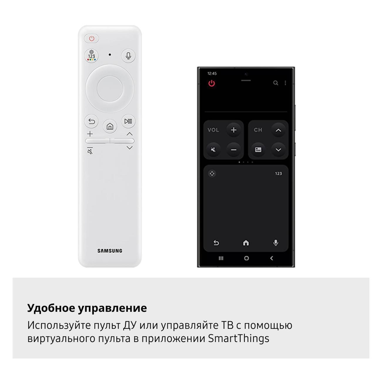 Платформа обеспечивает доступ к широкому набору приложений для развлечений и удобную навигацию. Интеграция с экосистемой Samsung SmartThings позволяет управлять совместимыми устройствами умного дома непосредственно с телевизора или пульта.