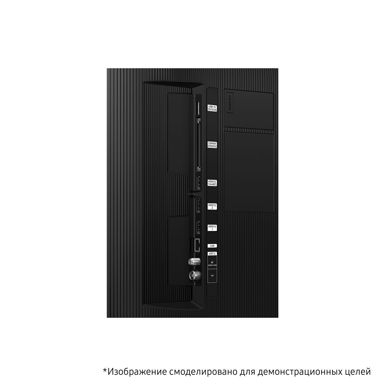 Телевизор оборудован тремя портами HDMI 2.1, одним USB 2.0, LAN-разъемом для проводного интернета и слотом CI+. Пульт работает от солнечной батареи, кроме того, доступно управление через смартфон. Встроенный тюнер поддерживает цифровые форматы DVB T2/C/S2 для приема кабельных и спутниковых каналов без использования специальной приставки. Модель совместима с системами умного дома.
