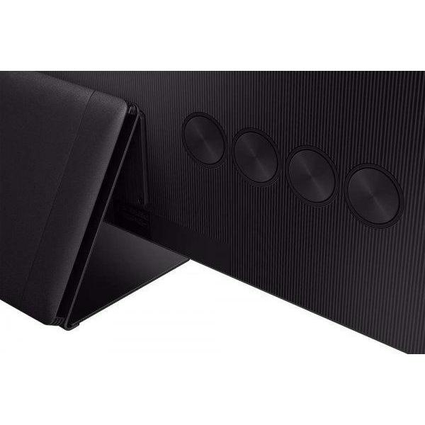 Акустическая система 2.2.2, состоящая из ВЧ, НЧ динамиков и сабвуфера воспроизводит объемный звук мощностью до 60 Вт. Технология Q-Symphony обеспечивает синхронизацию с саундбаром. OTS+ отслеживает перемещение объектов на экране и сопровождает движение изменением звука. Встроенные тюнеры DVB-C, DVB-S2, DVB-T2 поддерживают вещание каналов цифрового телевидения без подключения антенны. Для подсоединения совместимых устройств предусмотрены разъемы USB (два), RJ45, HDMI (четыре), аудио оптический выход, слот для карты CI, антенные выходы (два).