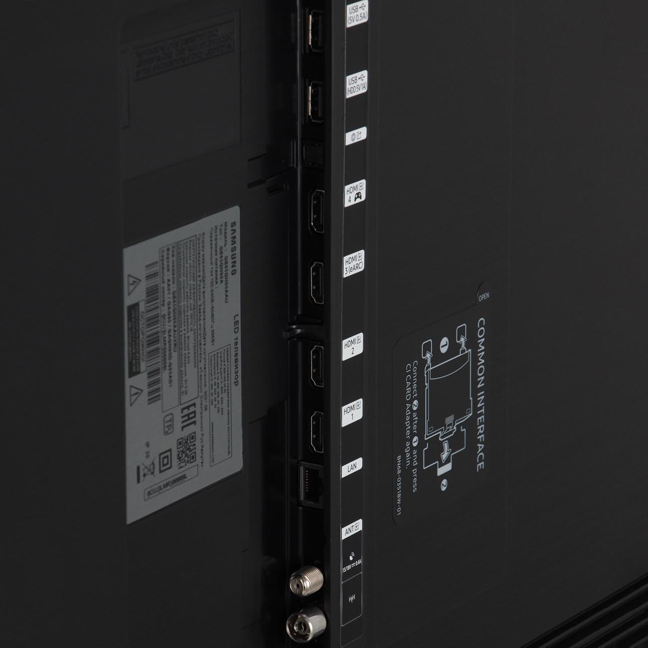 Мощность фронтальной акустики Dolby Digital Plus — 60 Вт. На модели установлена операционная система Tizen OS. Для дистанционного управления есть Bluetooth-пульт с солнечными батареями. Можно пользоваться голосовыми командами.