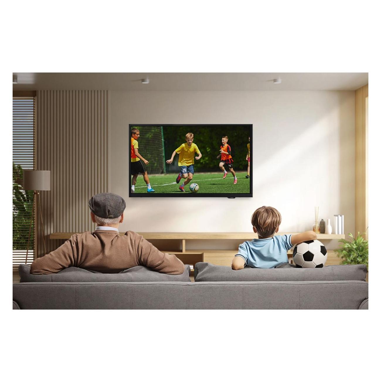 Ультратонкий корпус с безрамочным экраном с трёх сторон визуально расширяет пространство, компактные габариты (73,3×43,9×7,3 см без подставки) и лёгкий вес (3,8 кг) делают телевизор идеальным для кухни, спальни или небольшой гостиной.