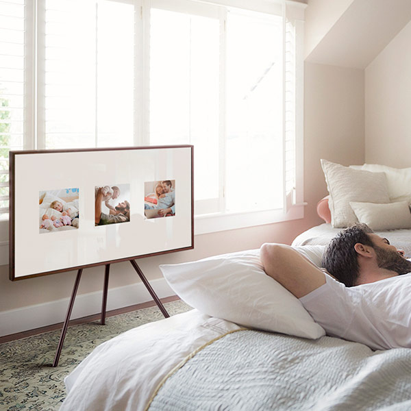 Необычный телевизор Samsung UE55LS003AU из серии The Frame выполнен в виде картины и рассчитан на установку на стене. Когда вы не смотрите ТВ-передачи, на его экран выводятся выбранные вами произведения искусства или собственноручно сделанные фотографии, которые легко загружаются с мобильного устройства или USB-носителя. Также можно оформить подписку на магазин Art Store и скачивать из него шедевры мировой живописи.