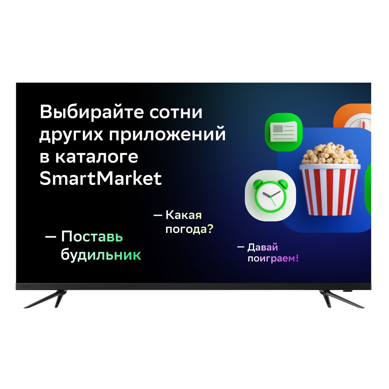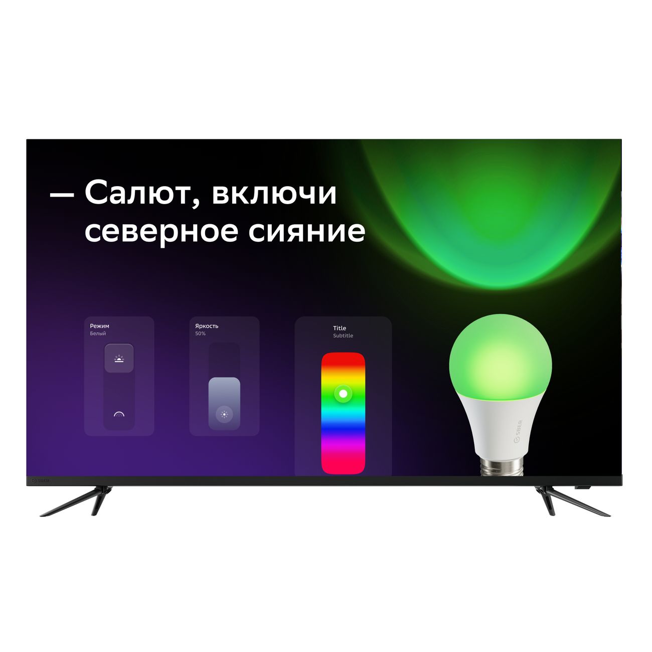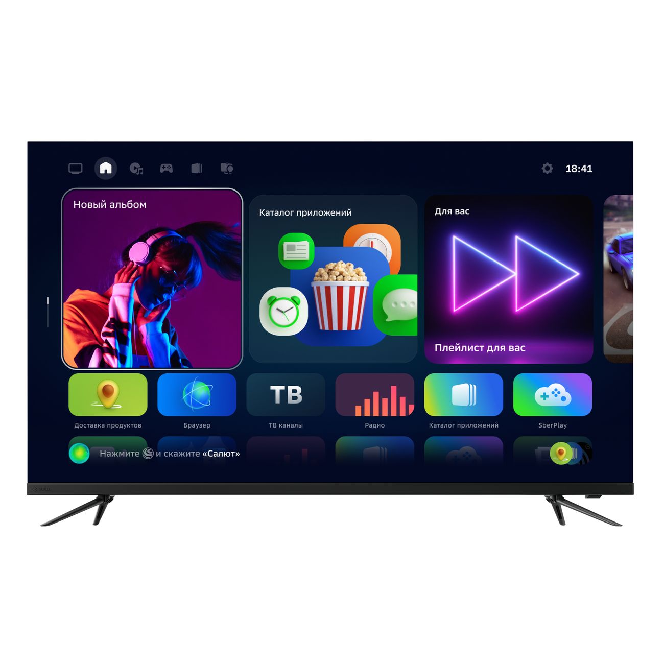 Телевизор Sber SBX-55U219TSS работает на операционной системе «Салют ТВ2». Он оснащен модулем Wi-Fi и открывает доступ к множеству фильмов, сериалов и передач в интернете. Для геймеров предусмотрен облачный сервис SberPlay, позволяющий знакомиться с требовательными играми.