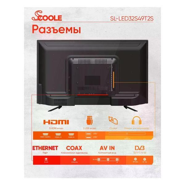 Вы можете купить Телевизор Scoole SL-LED32S49T2S в магазинах М.Видео по доступной цене. Телевизор Scoole SL-LED32S49T2S: подробное описание, фото и отзывы реальных покупателей, характеристики, возможность скачать инструкции и подобрать аксессуары.