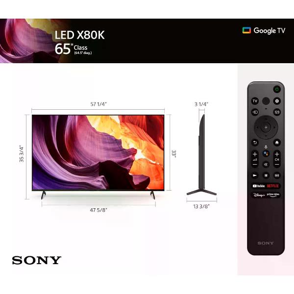 Телевизор Sony KD-65X80K в корпусе черного цвета — модель диагональю 65 дюймов форматом 16:9. Разрешение — 3840х2160 пикселей. Технология HDR делает картинку более четкой в наиболее светлых и темных областях, что обеспечивает комфортный просмотр. Для улучшения изображения используется система цифрового шумоподавления, которая особенно актуальна при некачественном сигнале. Smart TV дает возможность пользоваться всеми преимуществами интернета, в том числе воспроизводить видео на онлайн-сервисах. Поддерживается взаимодействие с ТВ при помощи голосового помощника Google Assistant.